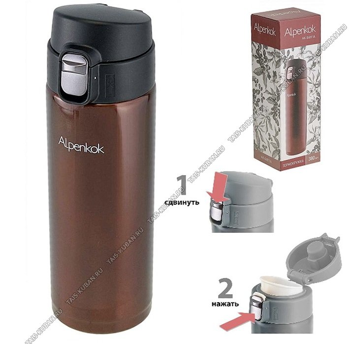 вакуумная крышка-поилка с кнопкой,клапан блокировки от протекания,зеркальная полировка,подарочная упаковка,Alpenkok