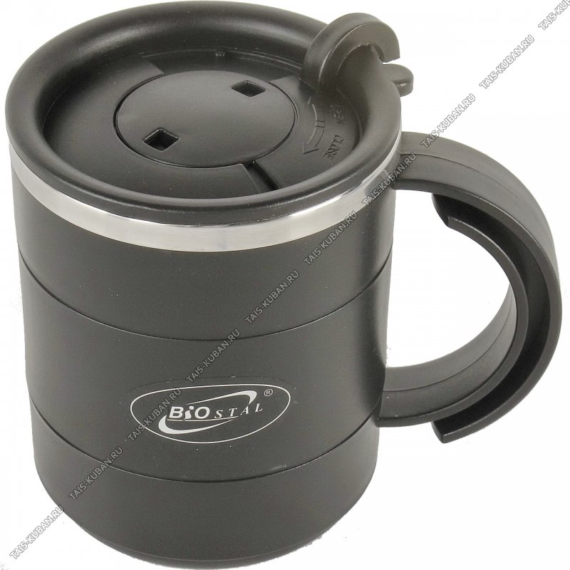 Термокружка (нерж+пластик) 0,4л "БИОсталь" черн,пласт.крыш.и ручк,ф.цилиндр