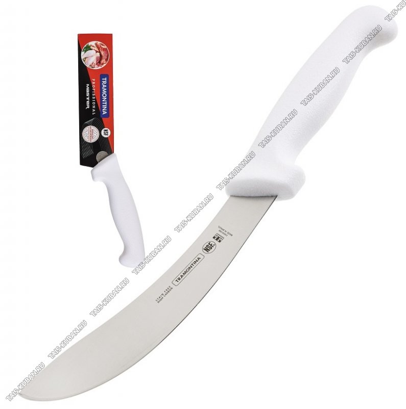 изогнутое лезвие нержавеющая сталь DIN 1.4110,анатомическая ручка полипропилен с нескользящим покрытием,цвет белый,блистер,Tramontina