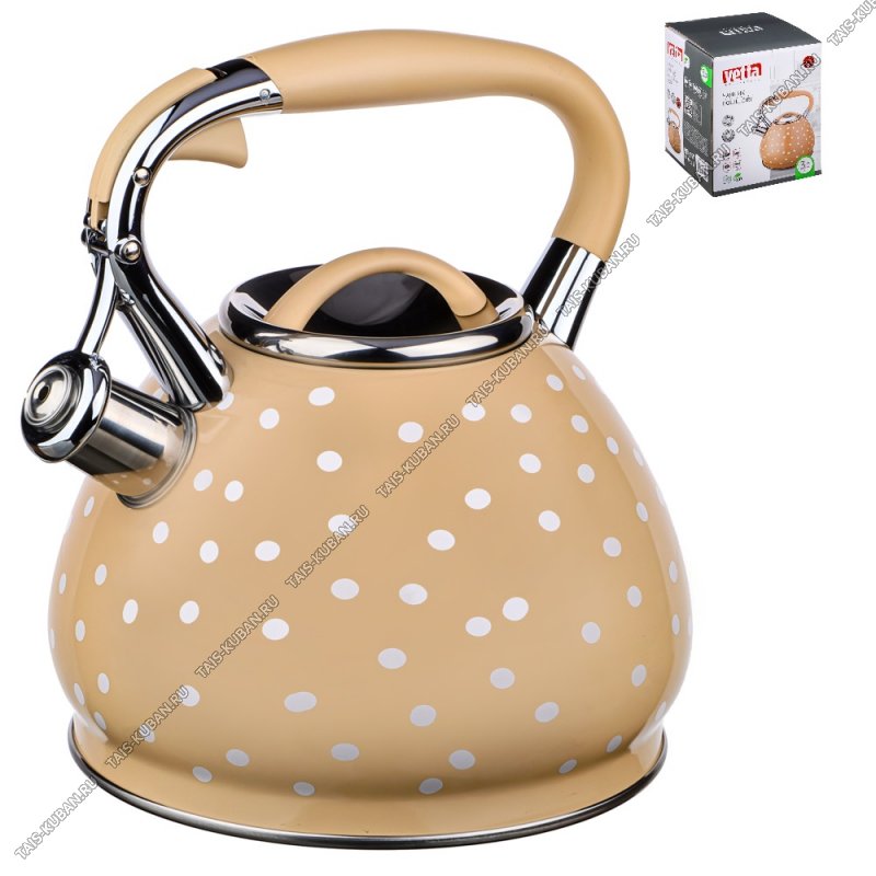 Чайник нерж 3,0л "горох белый" бежевый (12)