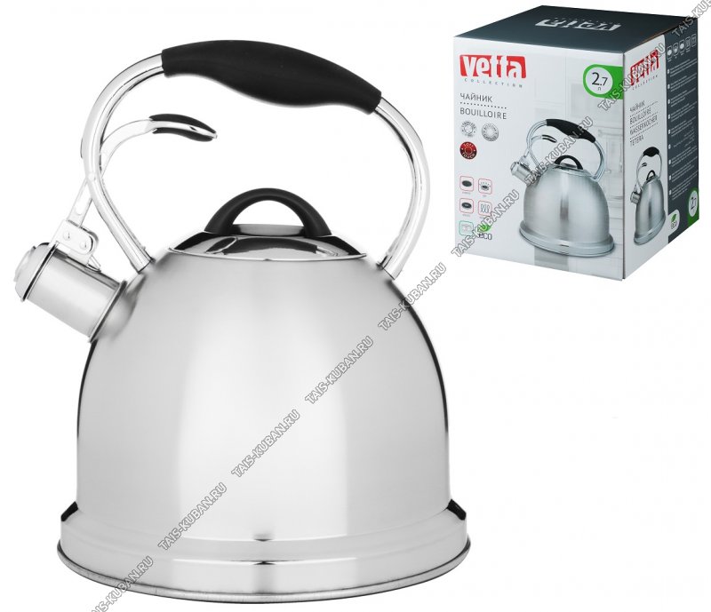 Чайник нерж 2,7л свист,индукц.дно,ручка металл/бакел.черн.с рычагом д/открыв,зеркал.полир,п/у (6)