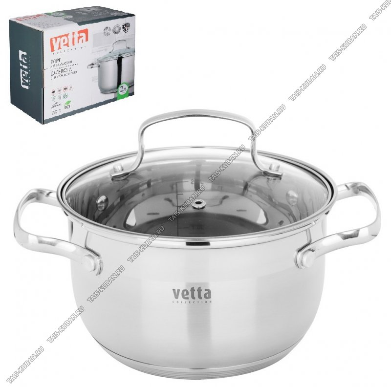 индукционное капсульное дно,ручки-скобы цельные металл,стеклянная крышка рука-скоба цельная металл,зеркальная/матовая полировка,подарочная упаковка,Vetta