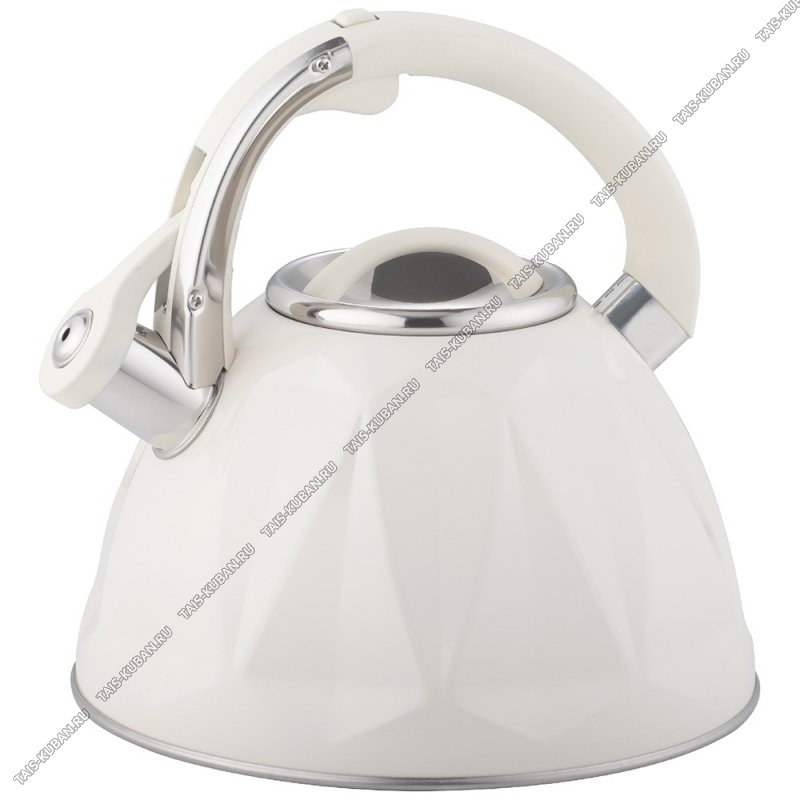 Чайник нерж 3,0л сливочн,свист,индукц.капсул.дно,рельефн."грани",ручка металл/бакел.сливочн.с кнопк.д/отерыван,глянец,п/у (6)
