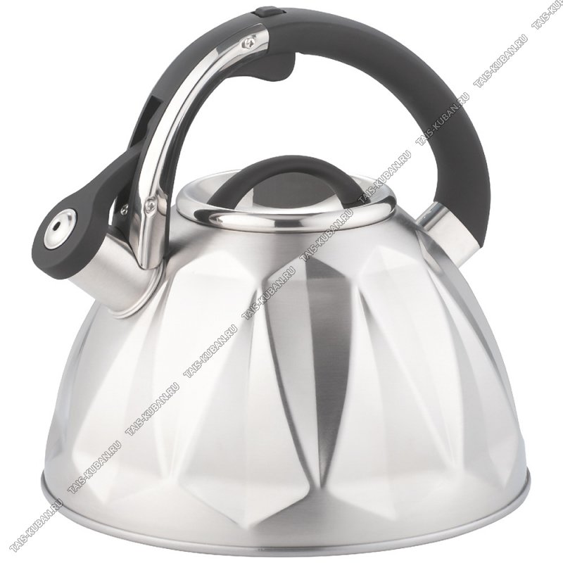 Чайник нерж 3,0л свист,индукц.капсул.дно,рельефн."грани",ручка металл/бакел. с кнопк.д/открыван,матов,п/у (6)
