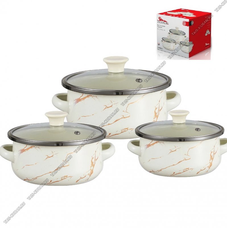Набор мини-кастрюль 3шт "Золотой мармор" кремовый (0,5/0,8/1,2л;d12/14/16см) стеклянная крышка,индукционное дно,подарочная упаковка (12)