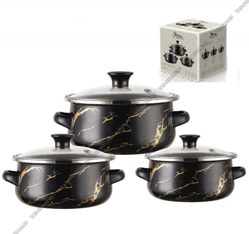 Набор мини-кастрюль 3шт Набор мини-кастрюль 3шт "Золотой мрамор" на чёрном (1,2/1,5/2,1л;d16/18/20см) (8)