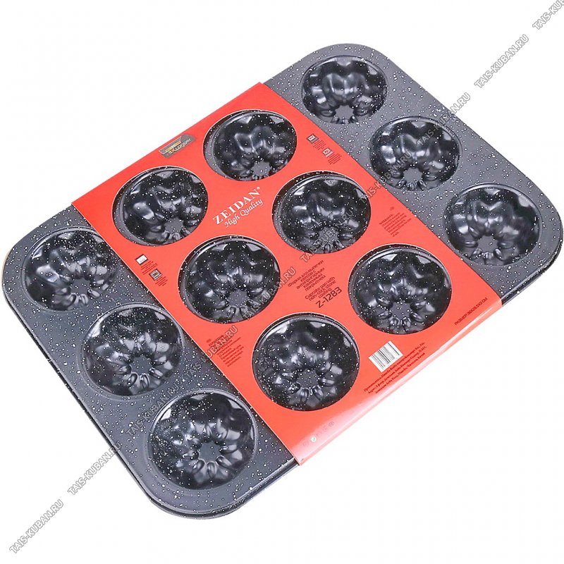 Форма д/кексов 12ячеек (36х27 h3см) "Цветок" черн/бел."гранит"