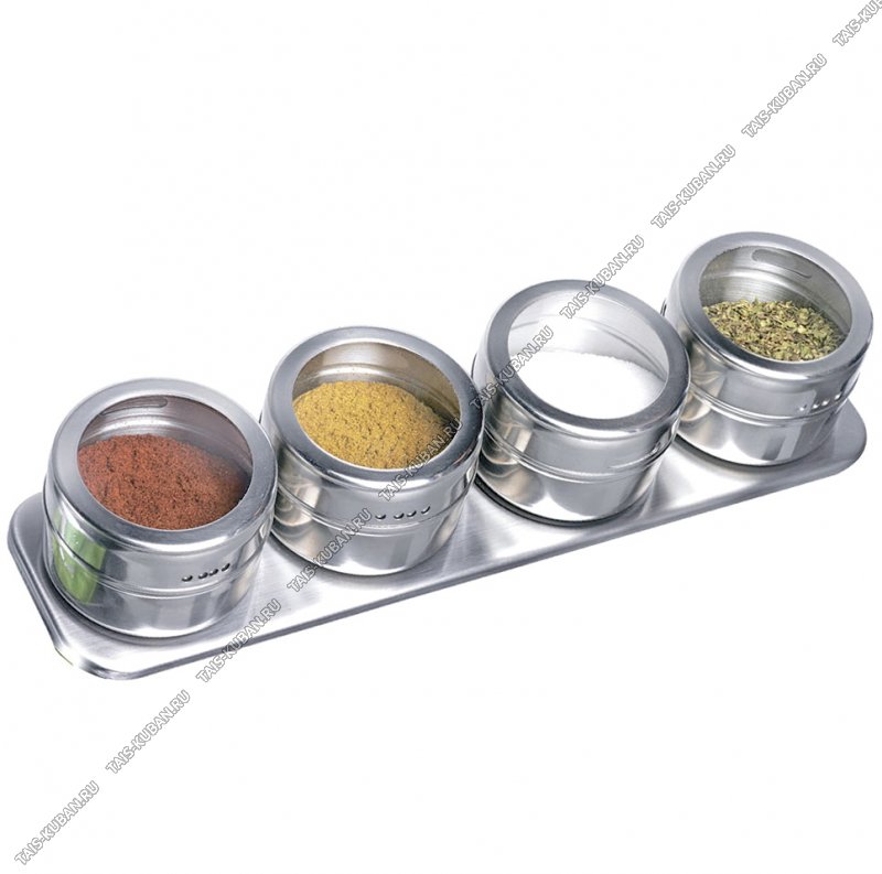 Н-р для специй 4 предмета 100мл на магнитах+подставка,стекло/нержавеющая сталь,подарочная упаковка (24)