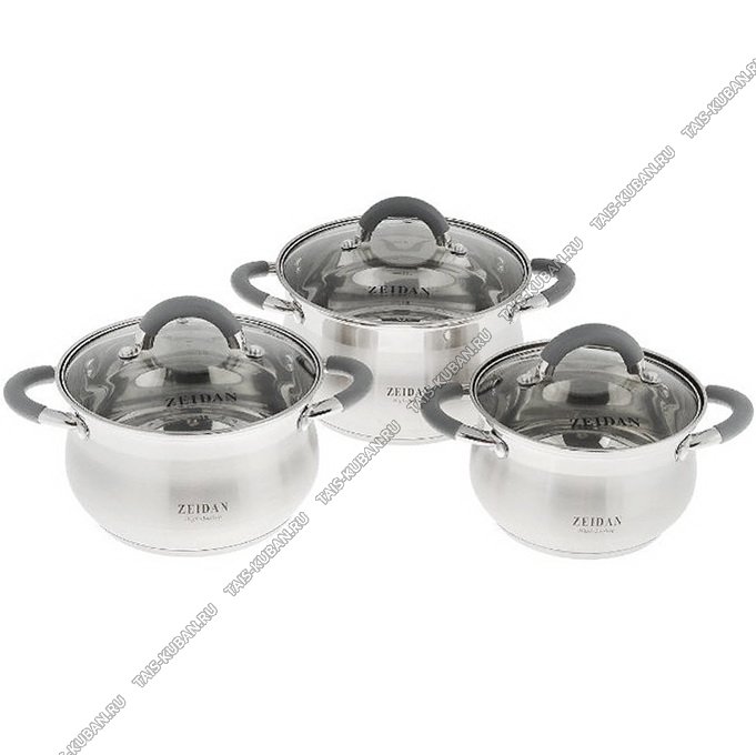 форма груша,стеклянные крышки,индукционное дно,металлические ручки с силиконовыми вставками,комбинированная полировка,подарочная упаковка,Zeidan
