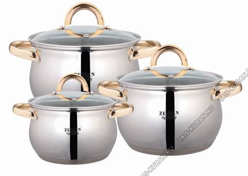 форма груша,стеклянные крышки,индукционное дно,металлические ручки "золото",зеркальная полировка,подарочная упаковка,Zeidan