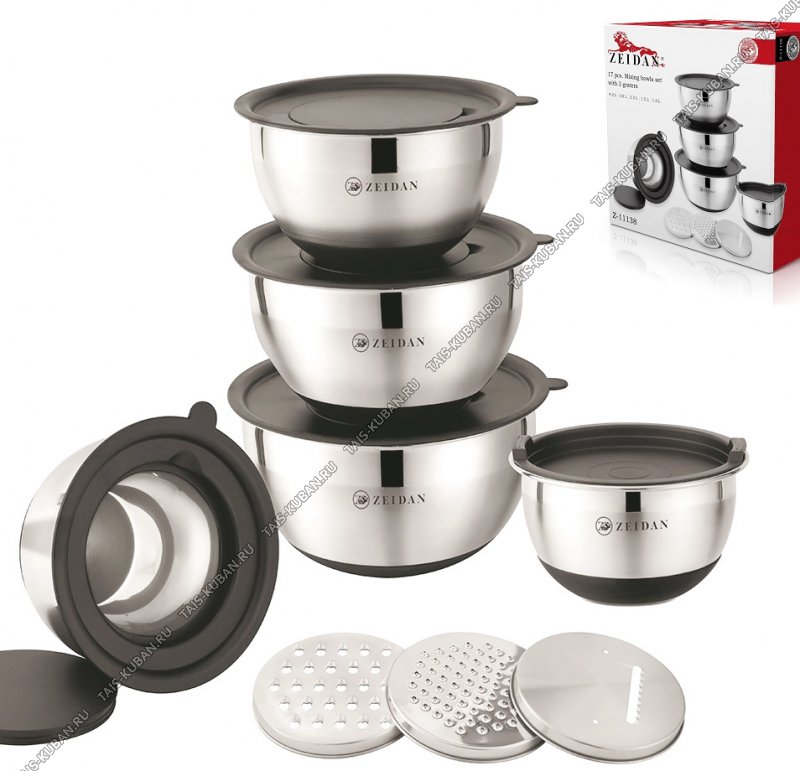 Миска (нержавющая сталь) набор 5шт (1,2/1,5/2,5/3,0/4,2л d16/18/20/22/24см) +терка (6)