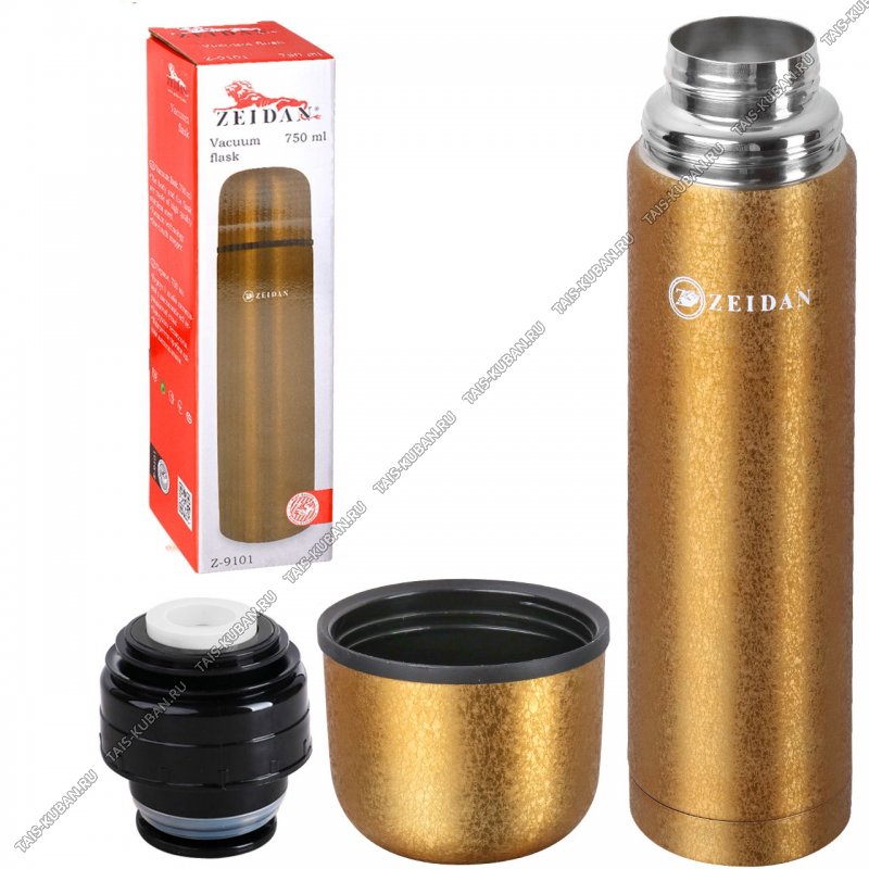 Термос 0,75л,пробка-кнопка,крышка-чашка,матовый фактурный корпус,золото,подарочная упаковка (12)