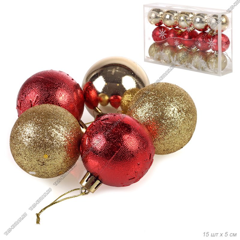 Ёлочный шар н-р 15шт d5см, золото+красн "Ассорти" пластик п/у (96)