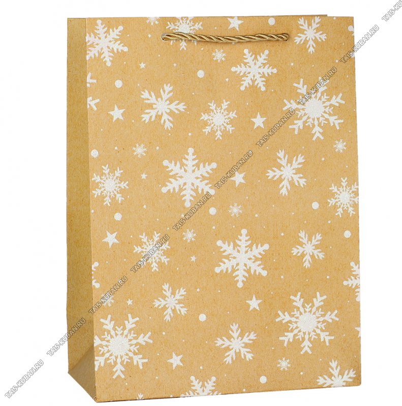 Пакет бумажный (h24х18см, дно8,5см) "Золотой лес/Снежинки" (12)
