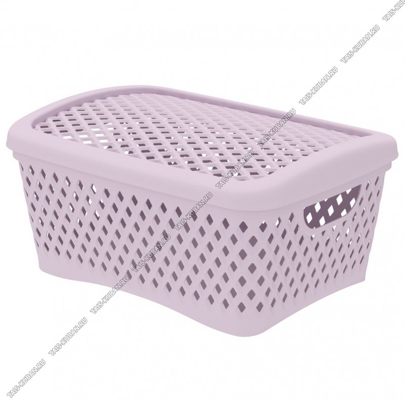 Корзинка Корзинка "Ромбики" пудрово-розовый, с крышкой 5л (30х22 h14см) (50)