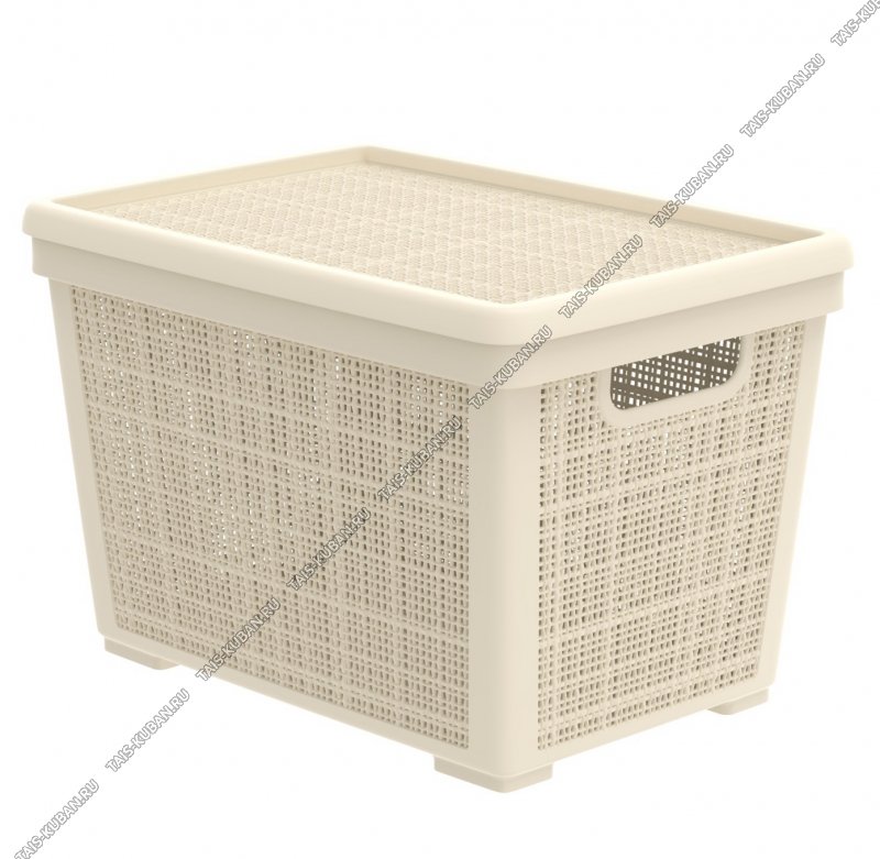 Корзина "Лен" слон.кость, с крышкой 22л (40х28,5 h26,5см) вырубные ручки (16)