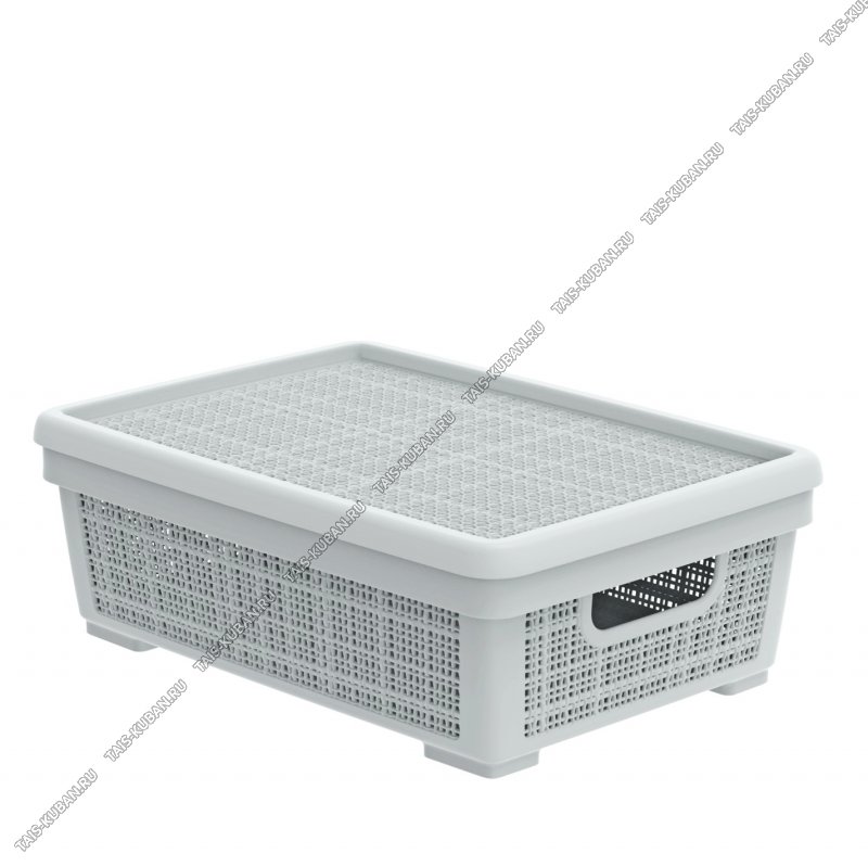 Корзина "Лен" серый, с крышкой 11л (40х28,5 h13,5см) выруб.руч (16)