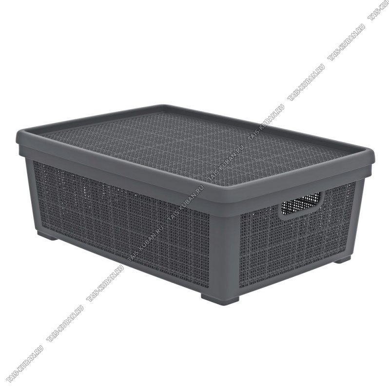 Корзина "Лен" графит, с крышкой 35л (57х40 h20,5см) (8)