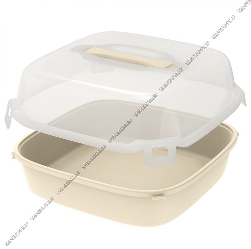Тортовница с крыш,на 4защ,беж,квадр (30х30 h14см) с руч,2-х стор.поддон (26) Тортовница с крыш,на 4защ,беж,квадр (30х30 h14см) с руч,2-х стор.поддон (26)