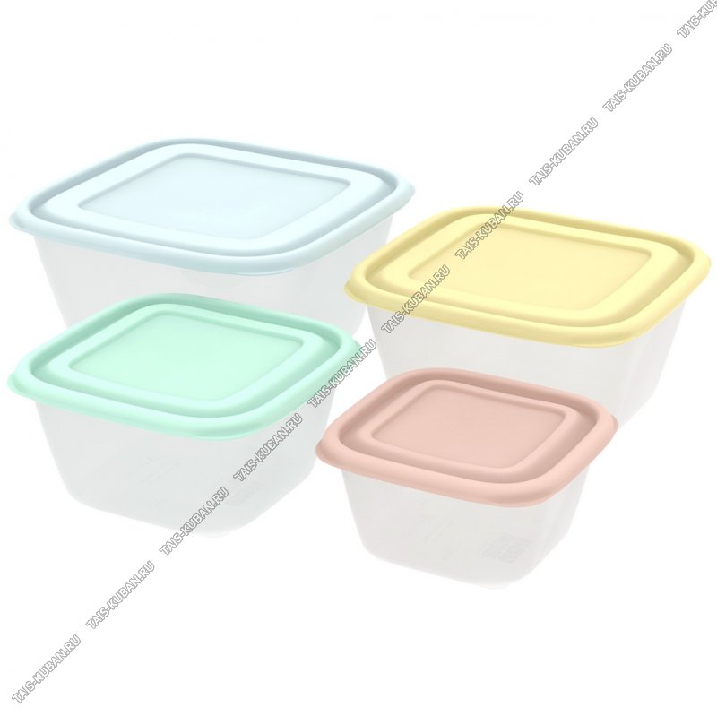 Контейнер "Прованс" Н-р 4шт 0,6/1/1,7/2,5л д/СВЧ, цветн.крыш,квадр.(20х20 h10см) (24)