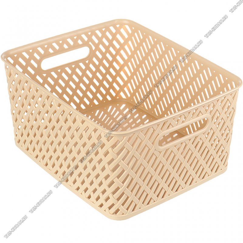 Корзина "Плетенка" 17,5л бежев, б/крыш,прям.(35х29 h17см) вырубн.ручки (9)