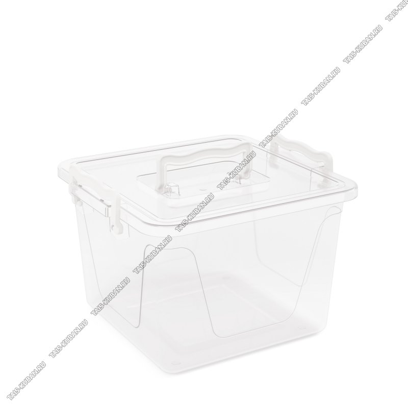 Контейнер квадр. 8,5л крыш.на 2защелк.(32х32 h22см) ручка на крыш,прозр (5)
