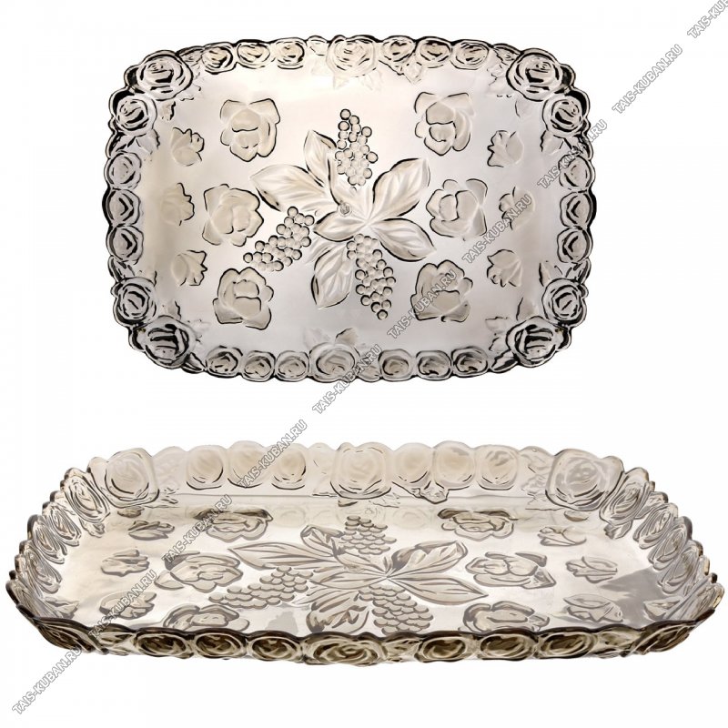 Блюдо "Розы/Виноград" прям,прозр.шоколад (41х28 h2,5см) (20)