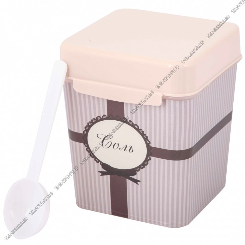 Емкость "Уют" 1,2л д/соли с ложк,квадр (13х11 h14см) (12)