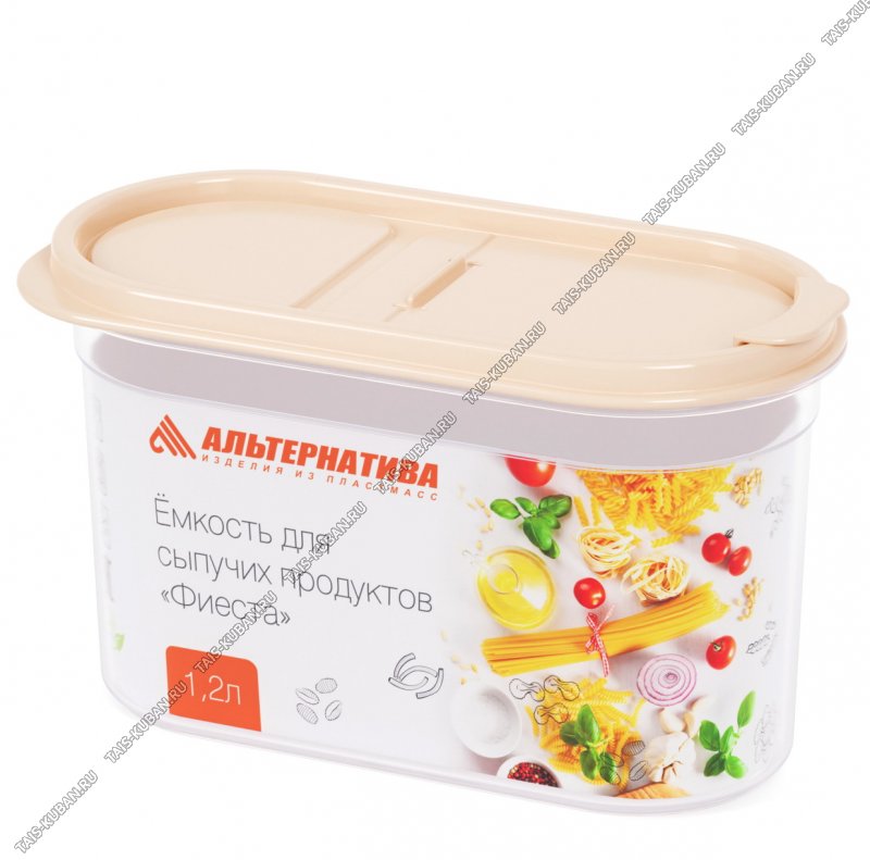 Емкость "Фиеста" 1,2л д/сыпучих,беж.крыш с дозат,овал (19х9 h11,5см) (12)