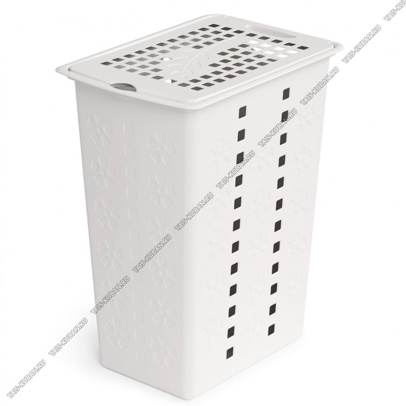Корзина д/белья 30л "Виолетта" белый, с крышк,прям.(38х25 h48см) (6)