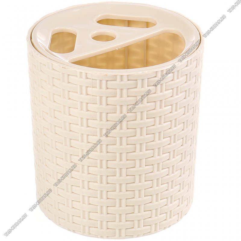 Подставка д/зубн.щеток 4-х секц."Плетенка" сливочн,круг (d11 h12см) (16)
