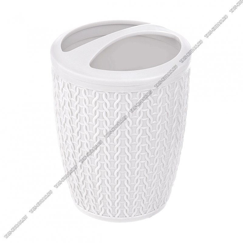 Подставка д/зубн.щеток 2-х секц."Вязание" белый,круг (d9 h12,5см) (18)