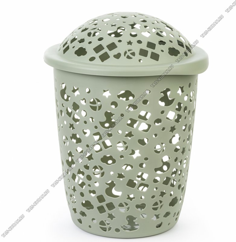 Корзина д/белья 45л "Непоседа" оливков, с крышк,кругл (d41 h56см) (3)