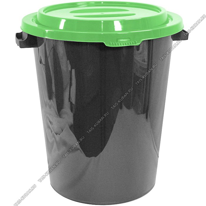 Бак д/мусора 60л черн/зел (d48 h50см) с крышк,мерн.шкала внут, Idea (1)