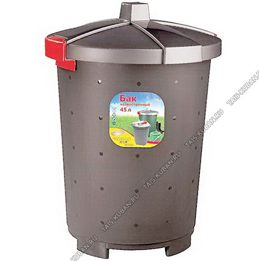 Бак д/мусора 45л крыш.на защелк черн (d45 h60см) Бытпласт (5)