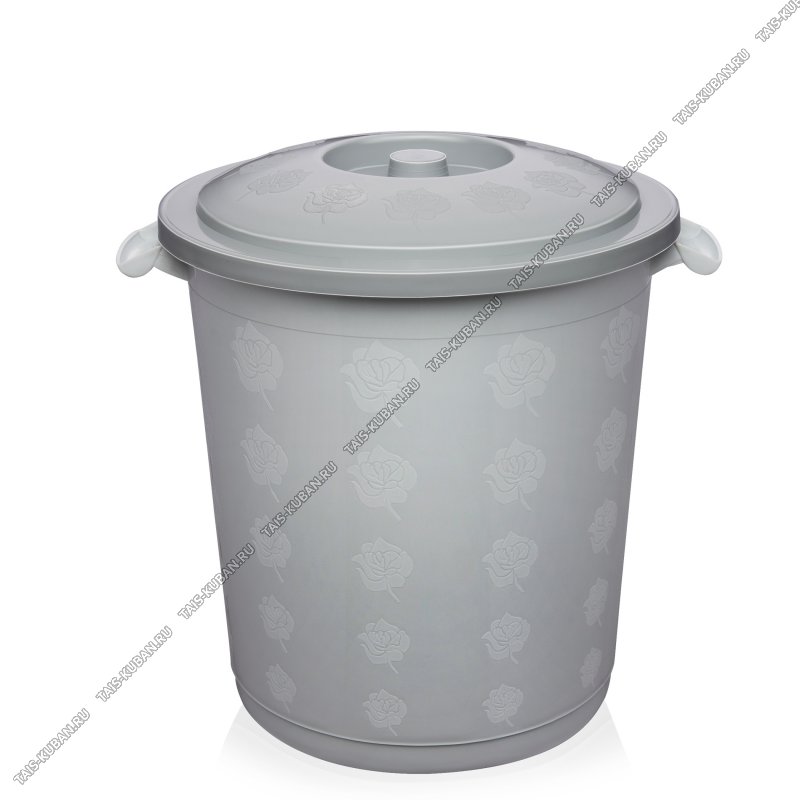 Бак д/мусора 25л "рельеф.цветы" серый (d35 h39см) с крыш, Эльф (15)