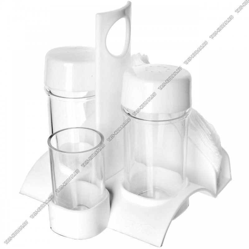 "Рондо" белый Набор д/специй 2шт*50мл +салфетн,подст.д/зубочисток (27)