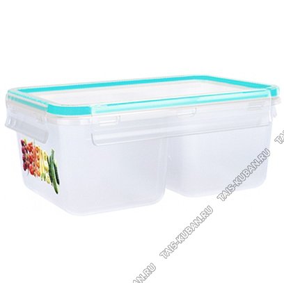 Контейнер прям 2-х секц 1,0л гермет.крыш.бирюза,на 4защ (19х13 h8см) (18) Контейнер прям 2-х секц 1,0л гермет.крыш.бирюза,на 4защ (19х13 h8см) (18)