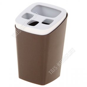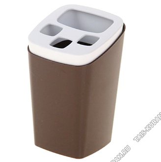 Стакан-подст д/зубн.щеток 3шт,зубн.пасты коричнев (8х8 h12,5см) "Breeze" (18)