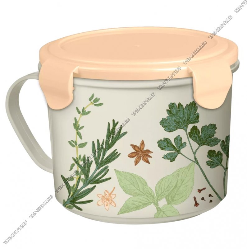 Кружка-бульонница 0,85л св.серый, с крышк бежев (d13,5 h10,5см), "Травы" (24)
