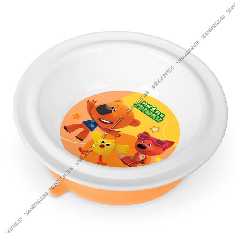 Тарелка глубокая,детская 0,4л "Ми-Ми-Мишки" дно-присоска,бел/оранж (d18 h3см) Бытпласт (12)