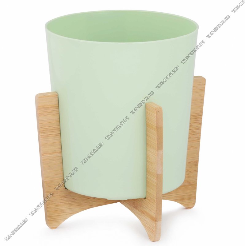Кашпо "Алессия" св.зелен 1,8л d17 h18,5см на бамбук подставке (15)