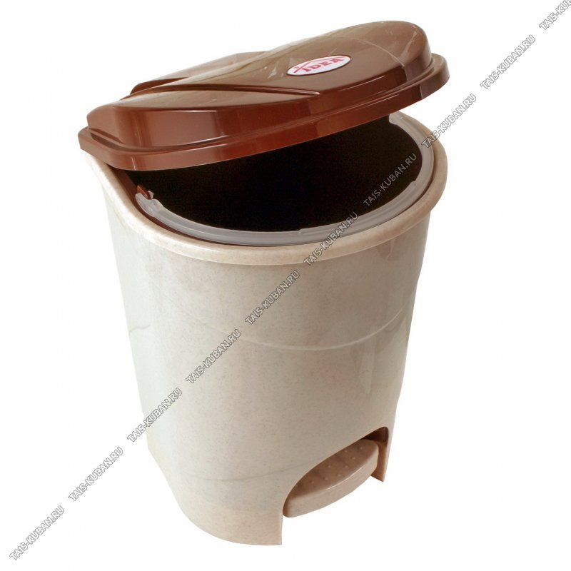 Ведро для мусора 7л с педалью, бежевый мрамор,овал.(21х23 h29см) внутри съемное ведро (9)