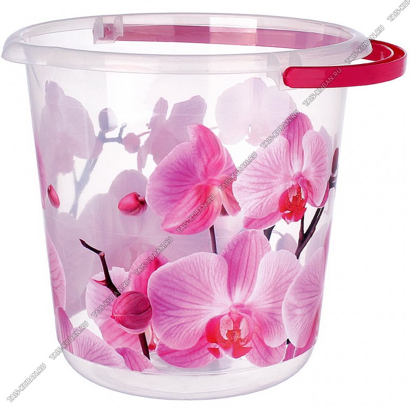 Ведро 5л с носик "Орхидея" прозр,круг (d22 h23см) (10)
