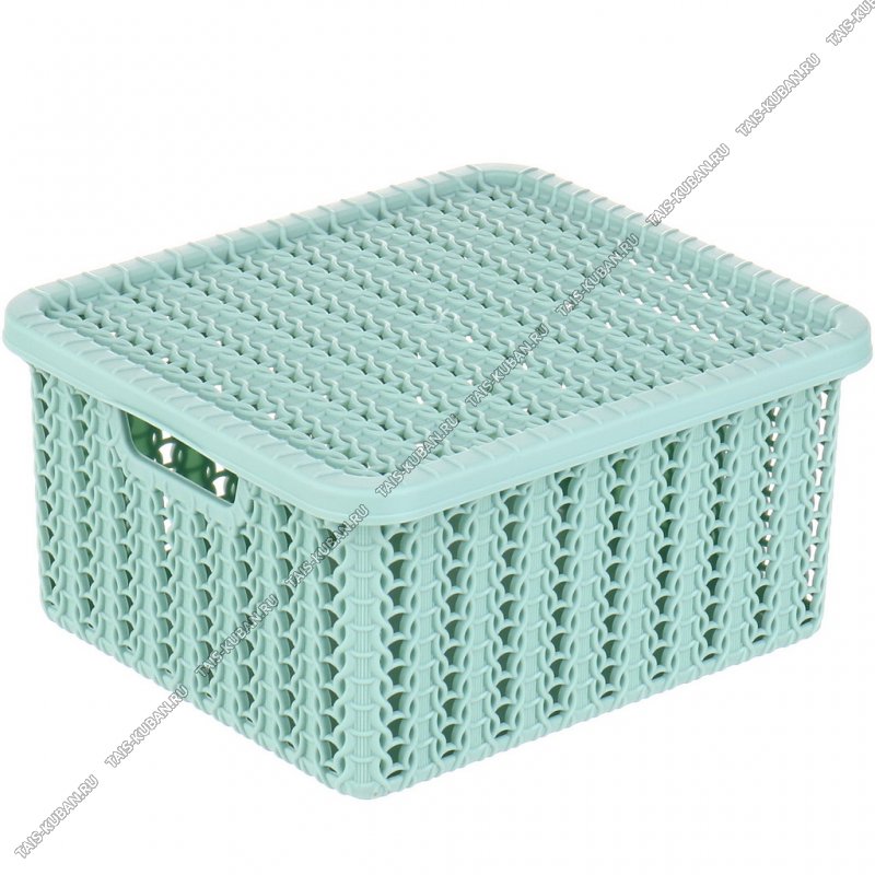 Корзина "Вязание" пудр-зелен, с крыш 1,5л (17х14 h8,5см) (16)