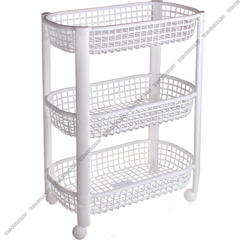 Этажерка 3-х яр (44х31 h69см) на колес,овал, белый, сетчат.корзины (3)