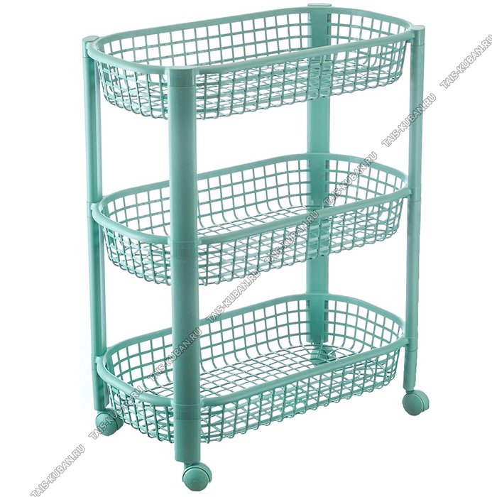 Этажерка 3-х яр (44х31 h69см) на колес,овал, фисташк, сетчат.корзины (3)