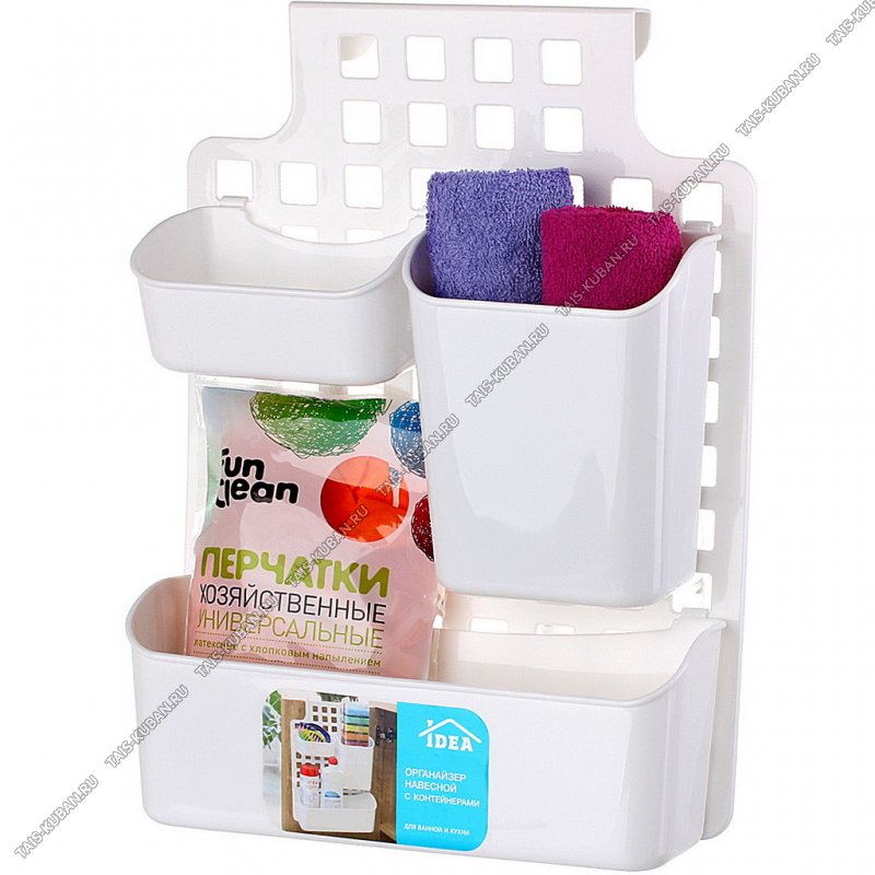 Органайзер-полка навесн, 3съем.контейн, д/дверцы,рейлинга белый (29х9 h38см) (6)