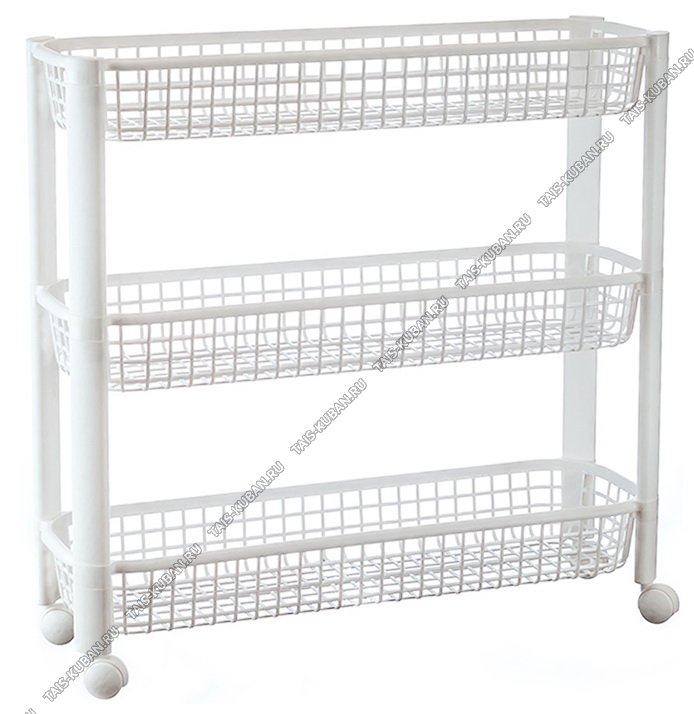Этажерка 3-х яр (60х18 h60см) узкая,на колес,овал, белый, сетчат.корзин (4)