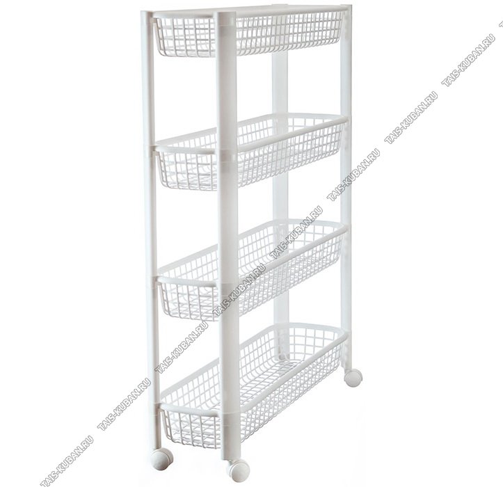 Этажерка 4-х яр (60х18 h80см) узкая,на колес,прямоуг, белый, сетчат.корз (3)